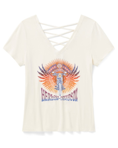 T-shirt Harley-Davidson® Women's Bling Sunset Ride Short Sleeve Laced Back Tee - Cloud Dancer